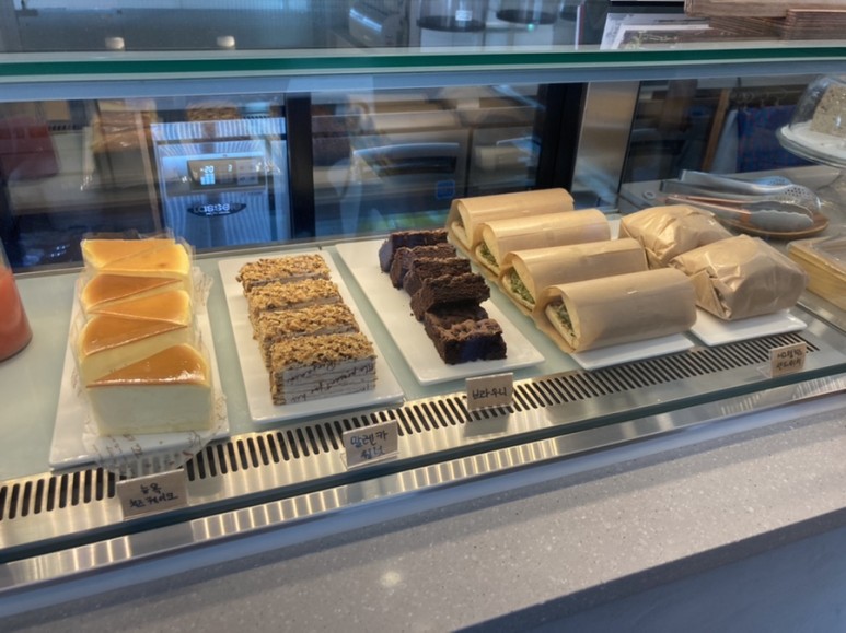 디저트 위주 카페가 아니다 보니 종류가 막 엄청 많다기 보단 딱 사진에 보이는 정도의 베이커리와 디저트를 판매하고 있었다.