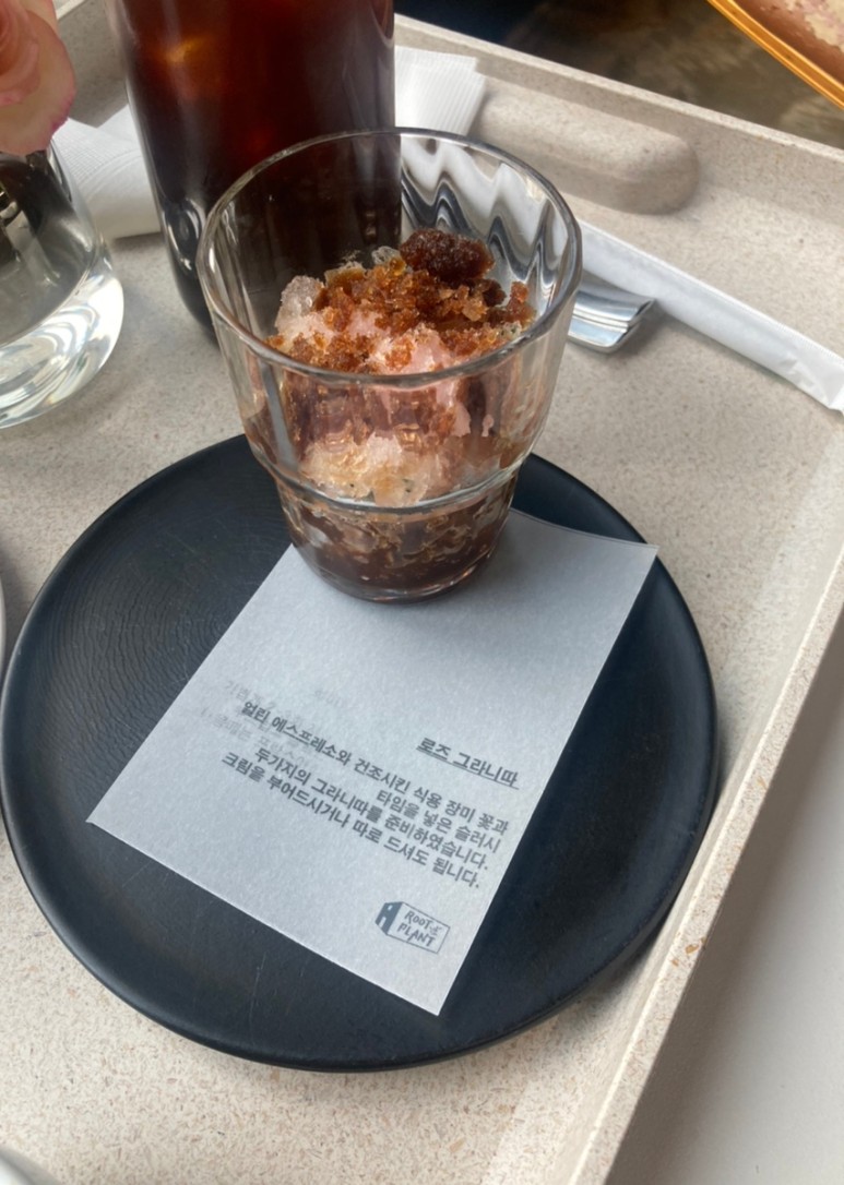 그리고 요 로즈 그라니따는 슬러시처럼 얼려져 있는 에스프레소 얼음 알갱이에 + 말 그대로 장미향이 살짝 나면서 + 동시에 향기로운 허브가 살짝 살짝 씹히는? 고런 맛이었다.