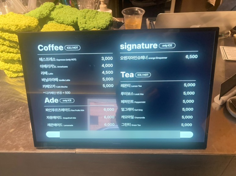 아메리카노 가격이 4천원이면 가격대는 무난한 듯.