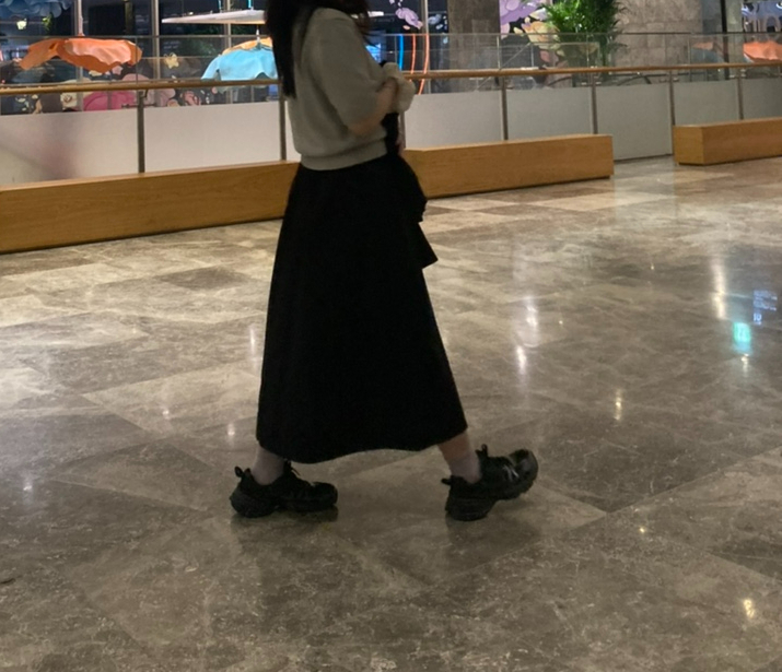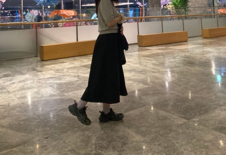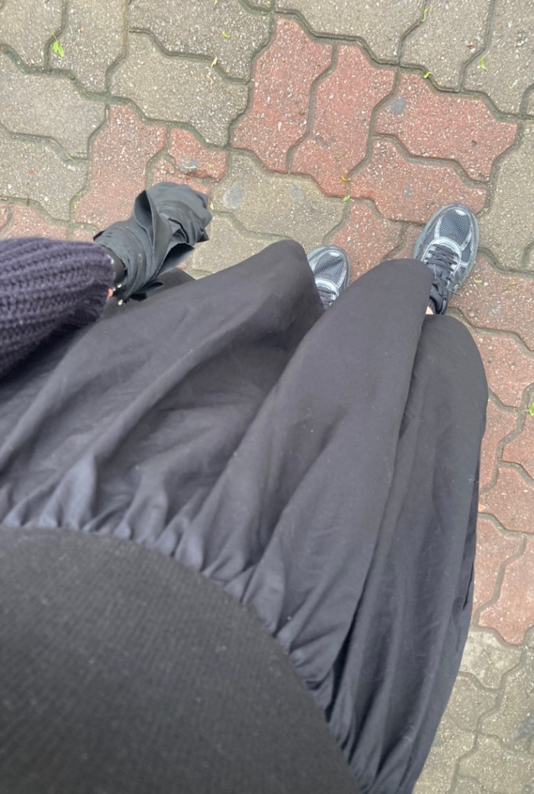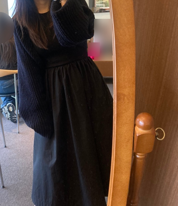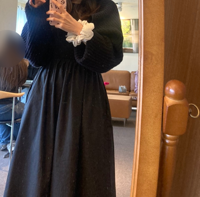 근데 막상 입으면 니트가 상반신을 딱 맞게 잡아주는 느낌이고 요 원피스는 하의가 벙벙하게 퍼지는 느낌이라 상의까지 벙벙한 것보단 좀 핏하게 가는게 나을 것 같아서 고민 끝에 그냥 XS로 구매함!