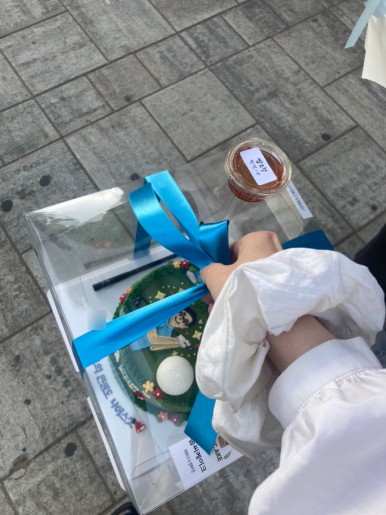 안에가 보이니까 픽업할 때 부터 케이크 넘 예뻐서 설렜다ㅠ