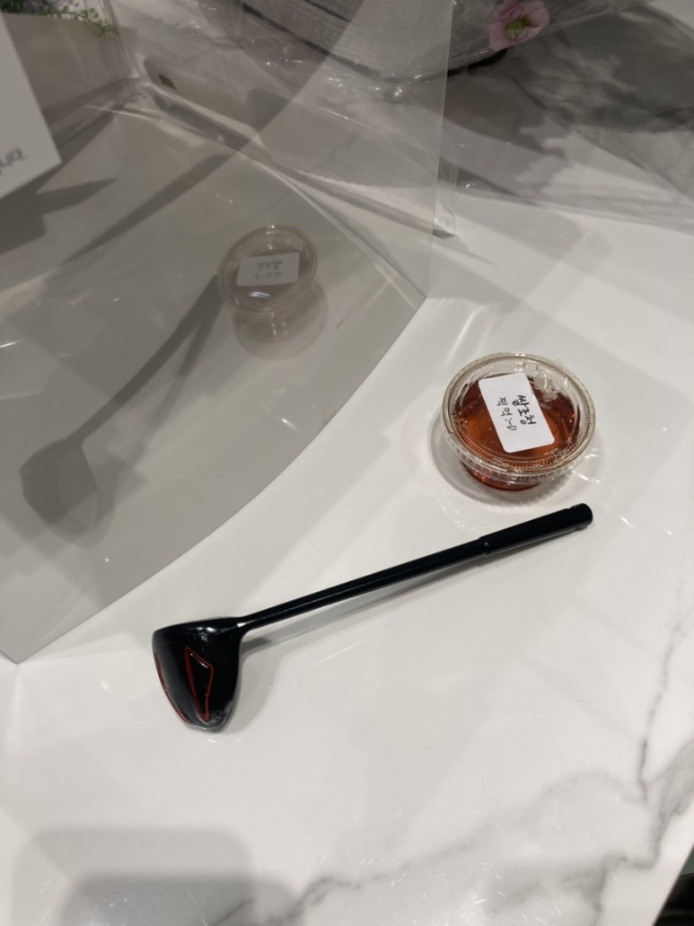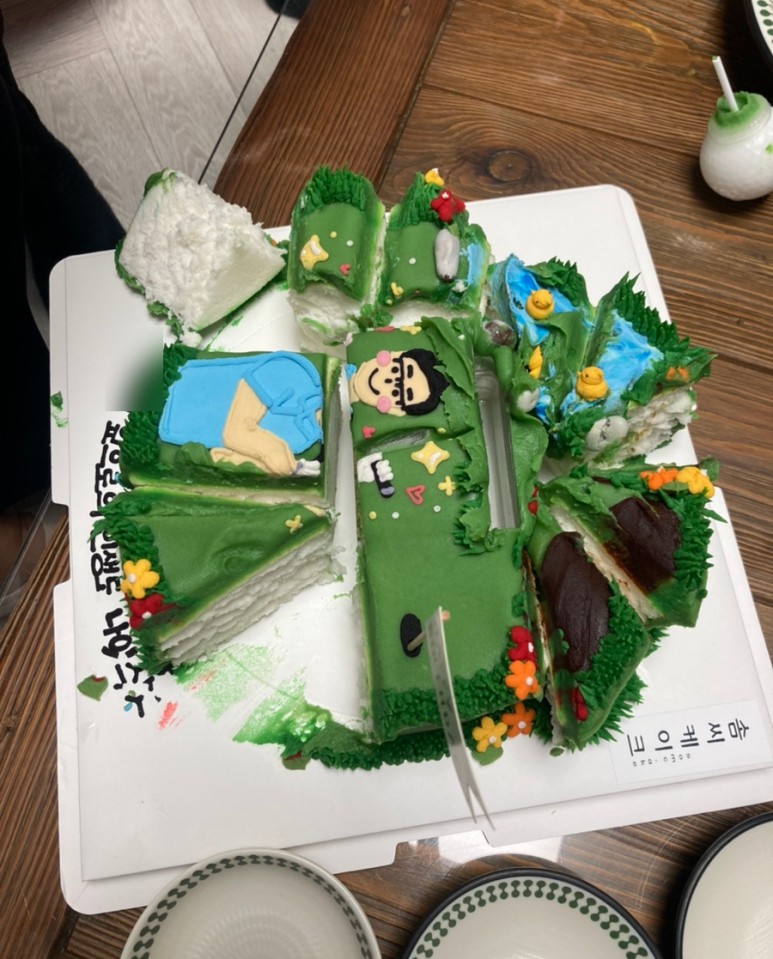 케이크 왼 쪽에 있는게 (골프공 초 끄는) 골프채인데