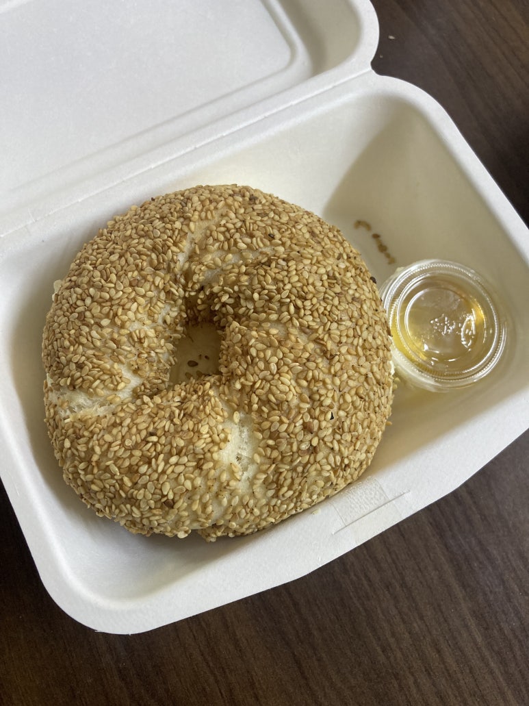 베이글에+크림치즈 있고+거기에 꿀 찍어먹는 맛ㅇㅇ