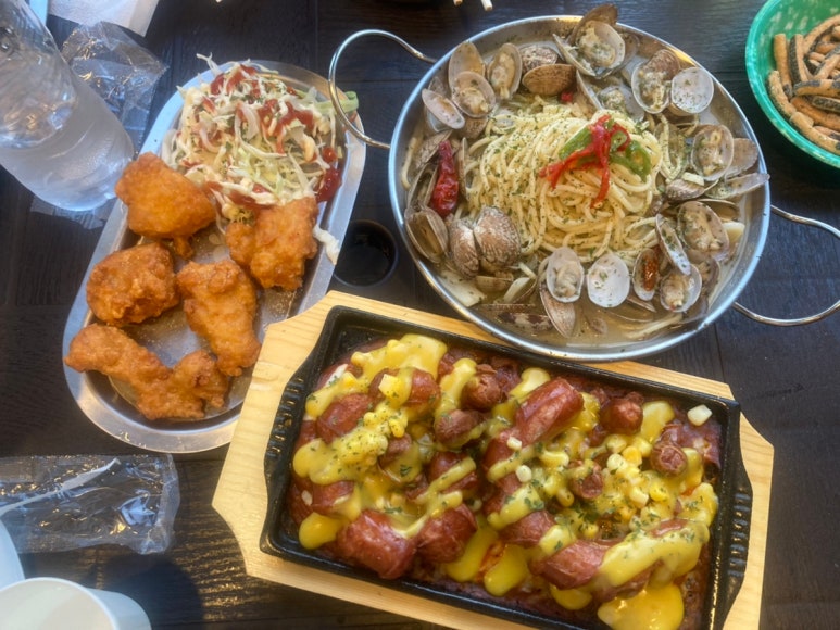 특별하다기 보단 위에 뿌려진 케찹과 머스터드 소스 맛으로 먹는게 큰 무난한 맛의 안주였다.