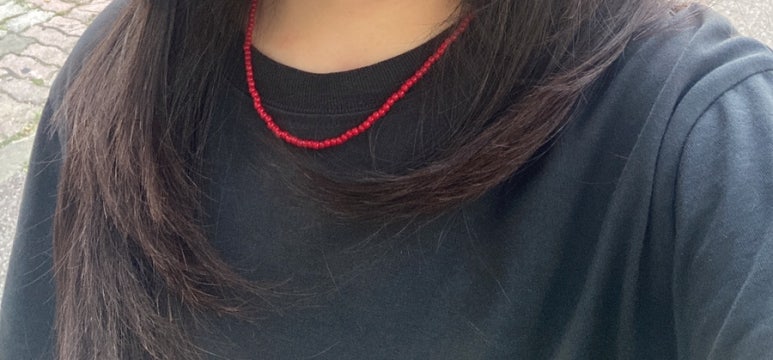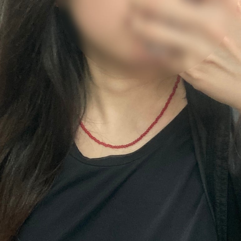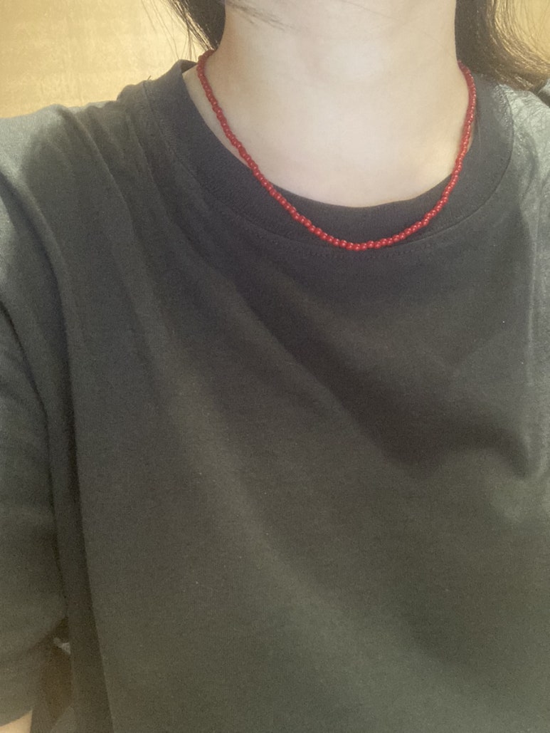 레드 컬러 비즈목걸이를 하나 샀다.