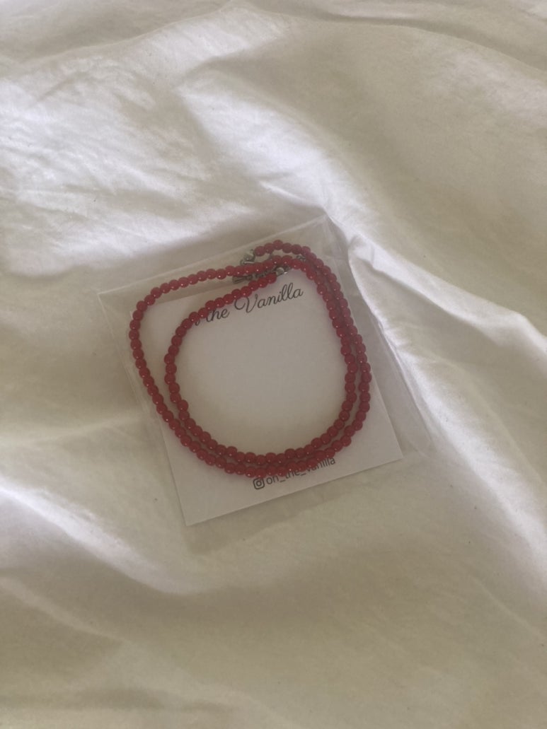 레드비즈목걸이추천 온더바닐라 : 구슬 원석 목걸이 써지컬스틸 초커 본문