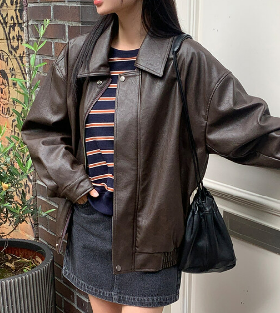 요런 펑퍼짐한 오버핏(O) 가죽 점퍼 스타일이 많이 보이던데,