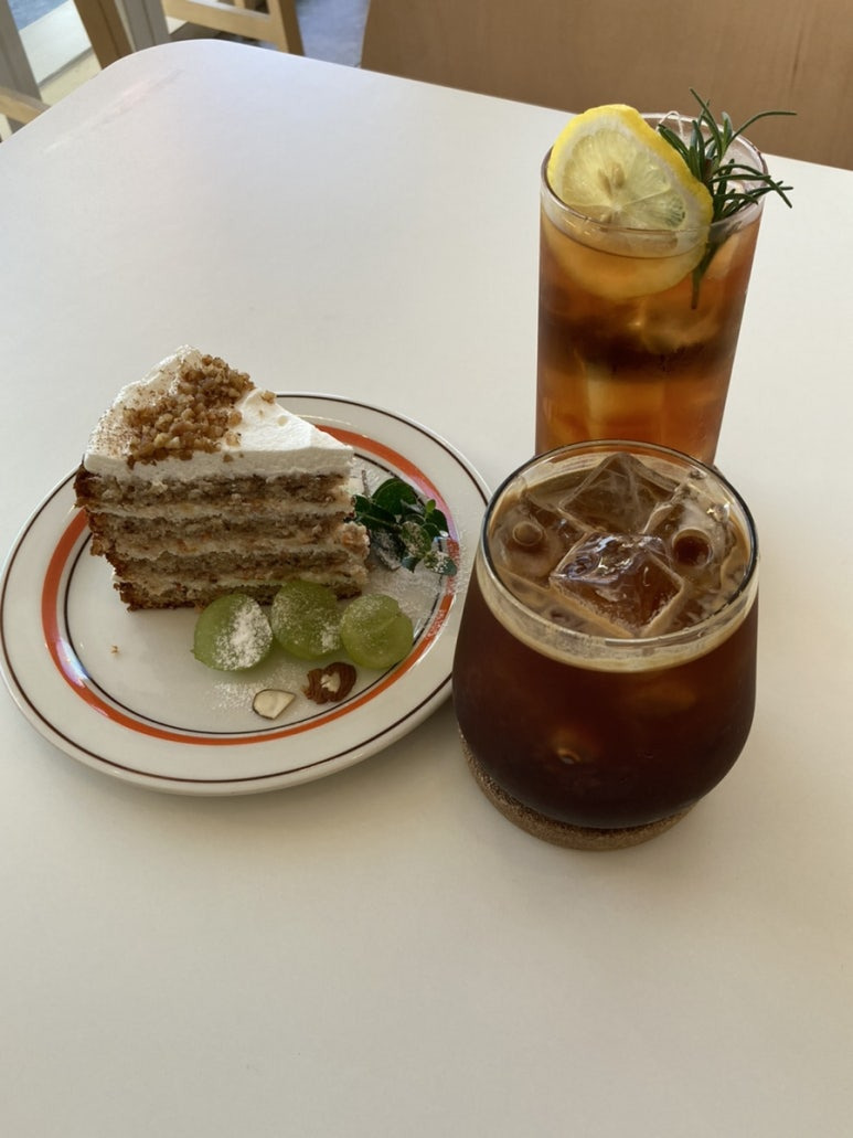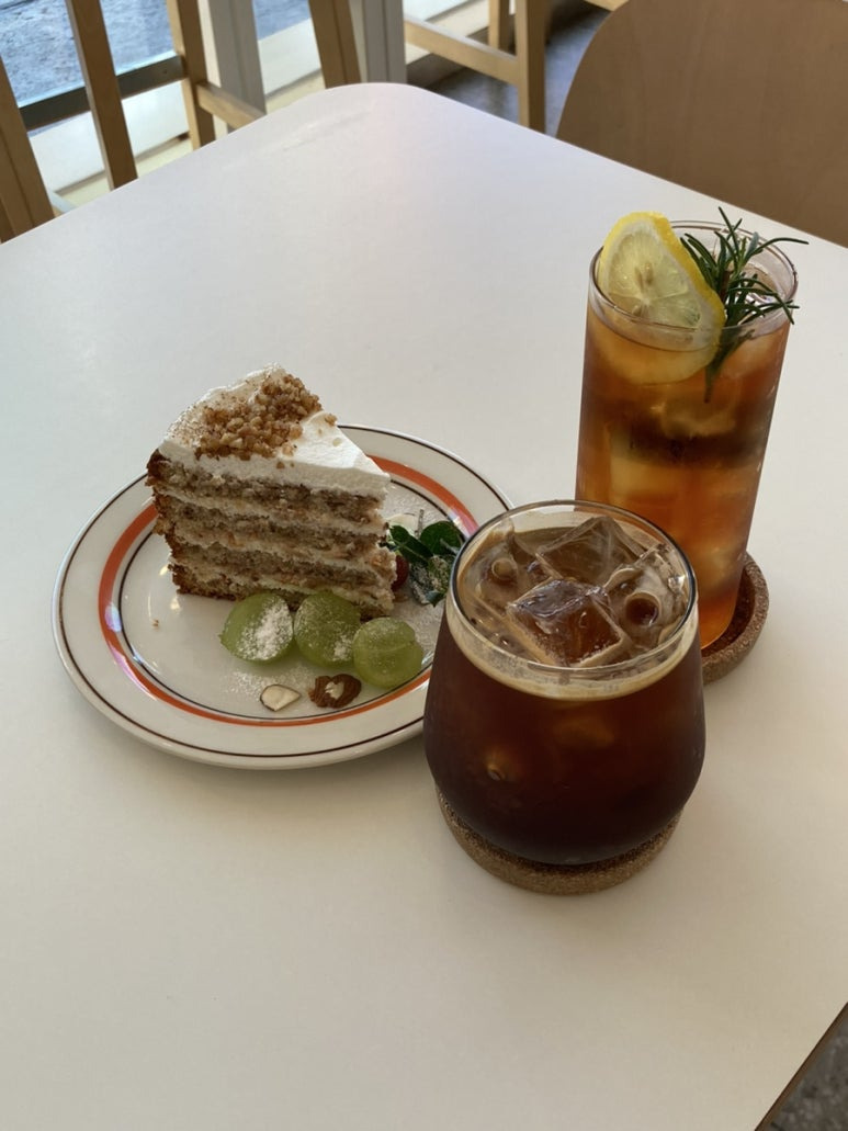 주문한 음료랑 케이크 등장!