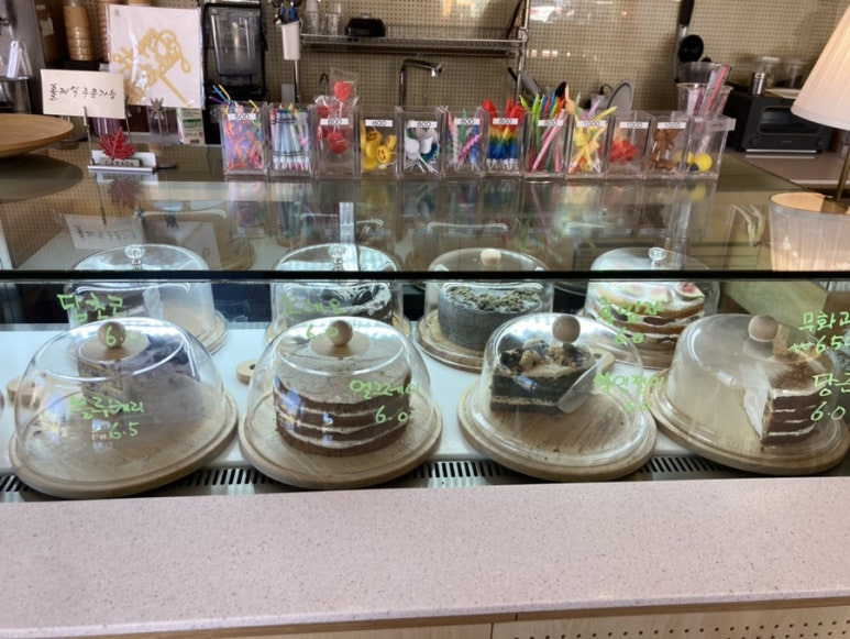 케이크 종류는 블루베리/당근/쑥/인절미 등등 해서 대략 8개 정도 있었다.