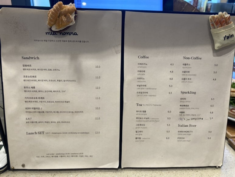- 샌드위치는 10시부터 시작합니다.