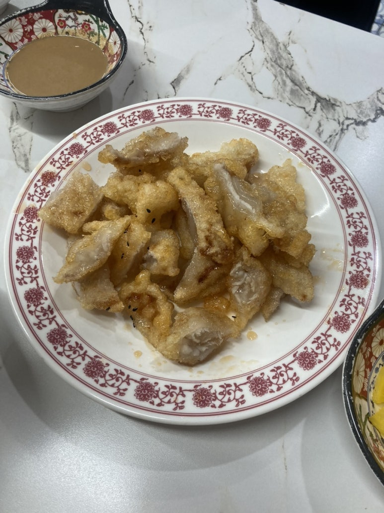 살짝 그 중국 특유의 향신료 향 (뭔가 양고기 먹을 때 나는 향같은 느낌?)이 나는 고기 튀김이었고, 요것도 소스 찍어먹으니 묘한 맛 나서 맛있었음!