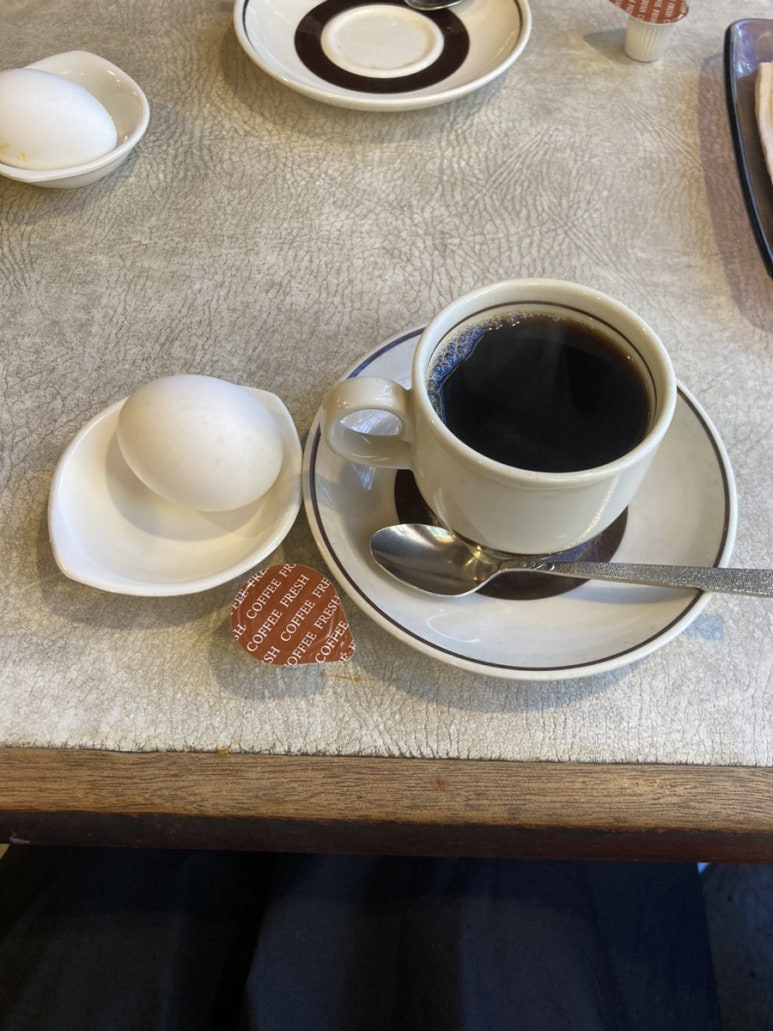 삶은 계란 + 커피 + 토스트 구성으로 나온다!