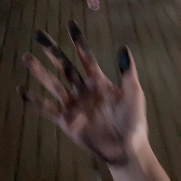 손을 보니 고무 검은색이 손에 다 묻어 있었다.