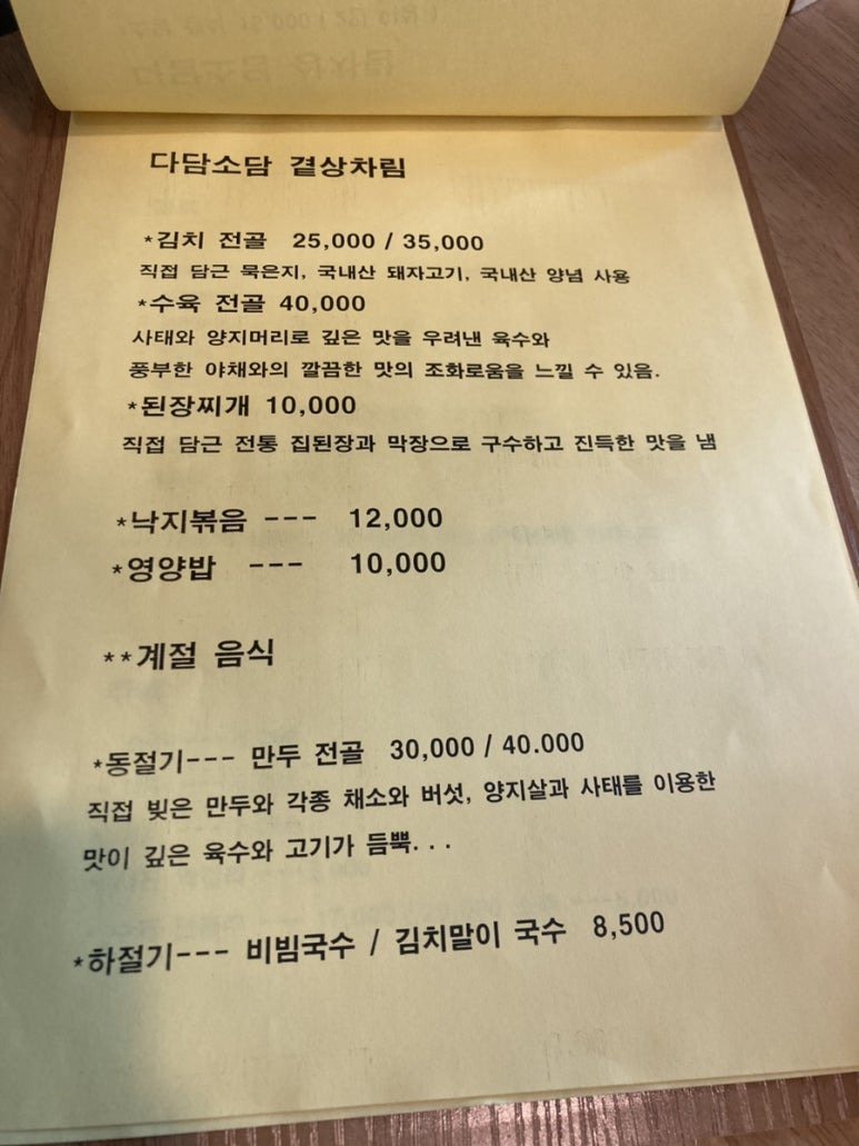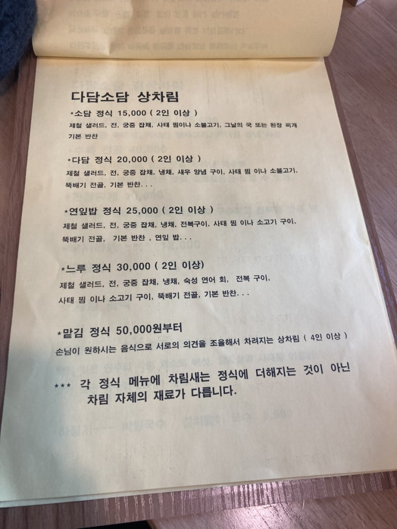 다담정식 2인분을 주문했다.