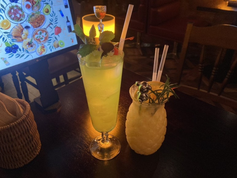 칵테일은 미도리샤워랑 버진피나콜라다를 주문했는데