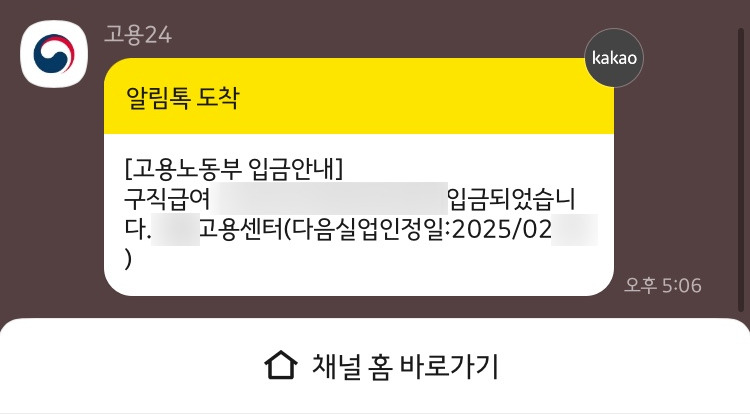 구직급여가 입금되었고