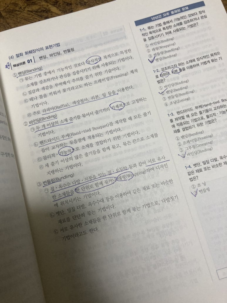 3) 화훼장식기능사 필기 책 內 개념 공부