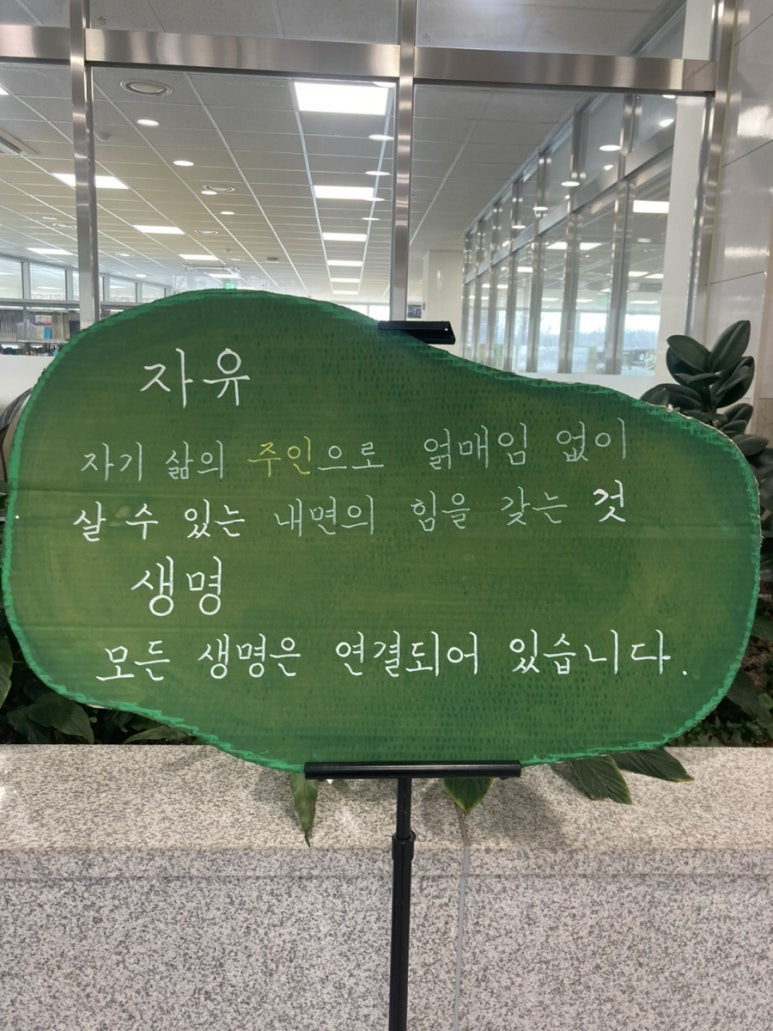 자유 : 자기 삶의 주인으로 얽매임 없이 살 수 있는 내면의 힘을 갖는 것.