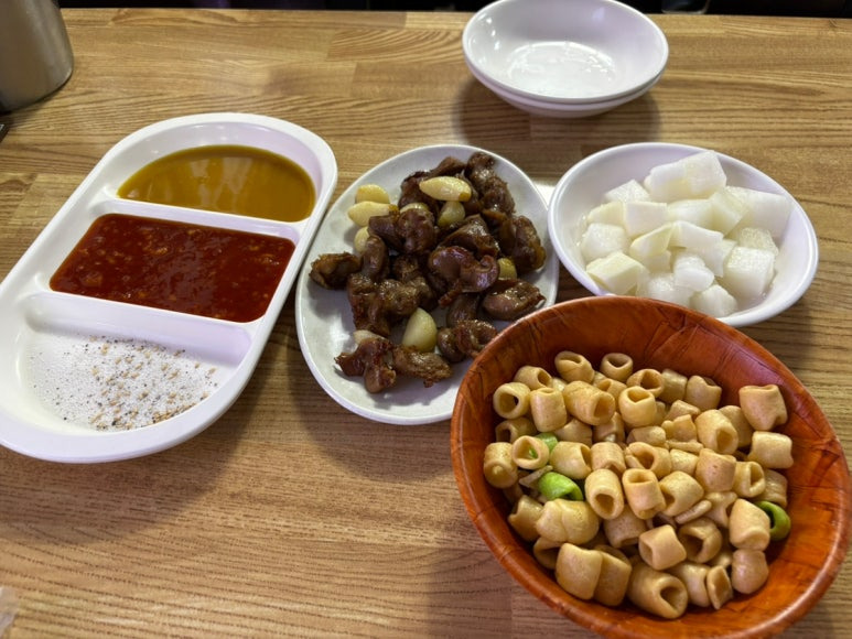 저 닭똥집도 기본으로 나오는 서비스치고 맛이 좋다.
