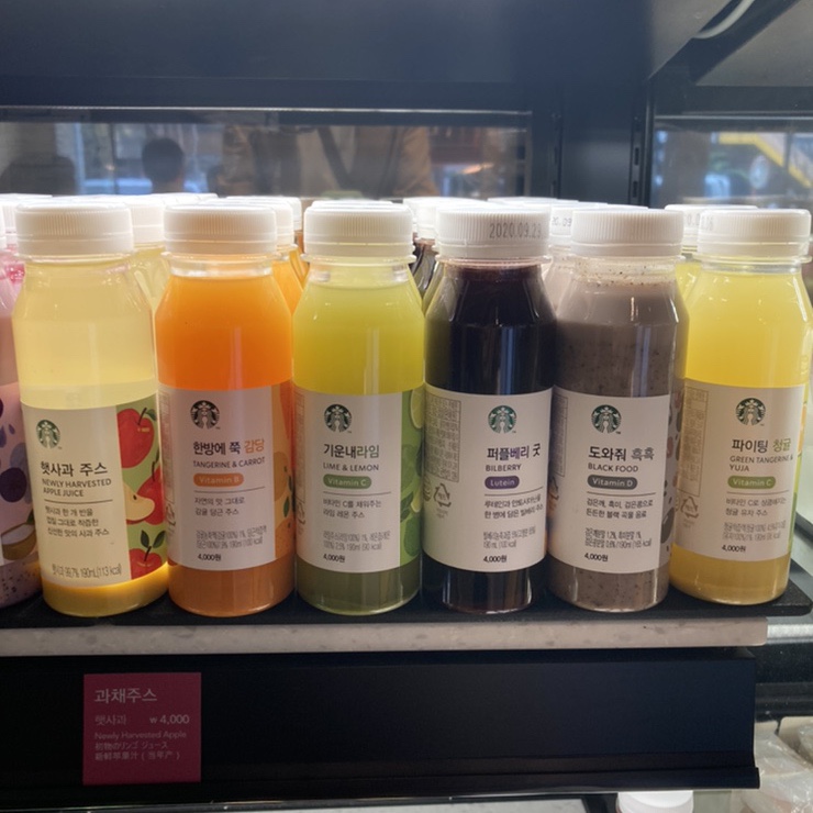 출근 길에 들렸는데 쥬스 이름들이 너무 귀여웠다.