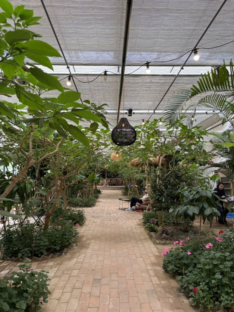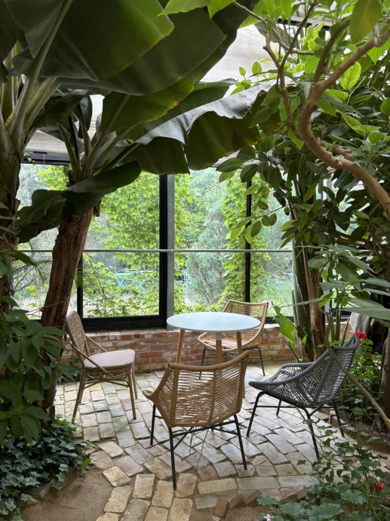 큰 온실 2개가 있는데 거기도 커피를 마실 수 있는 자리가 있다!