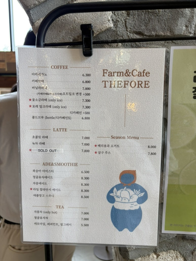 요건 음료 메뉴판인데 요즘 근교카페답게