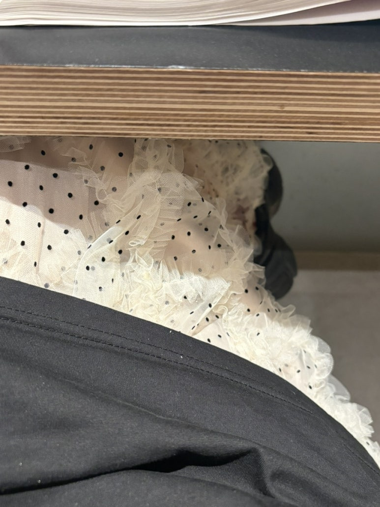 그리고 새로 산 호쿠스포쿠스 도트 치마 입고