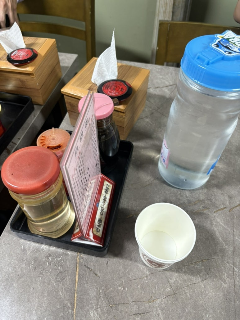 그리고 테이블엔 각종 식초, 간장 등등이 있음.