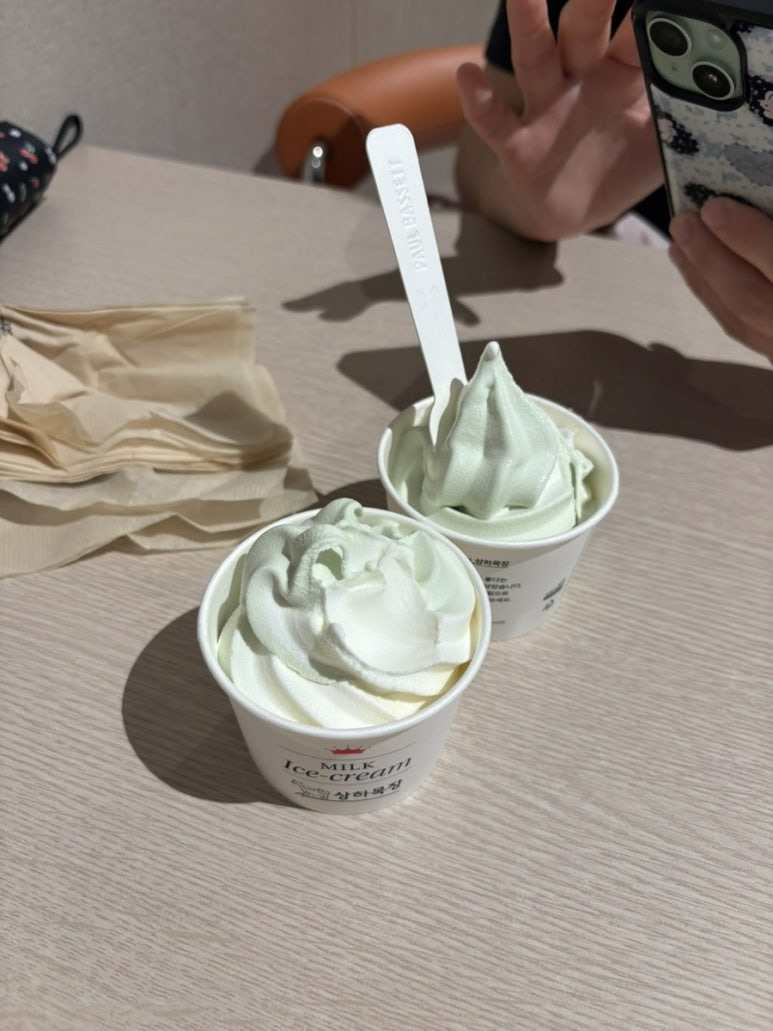 시즌 아이스크림이 멜론이라서 반반 맛으로 먹어봤는데