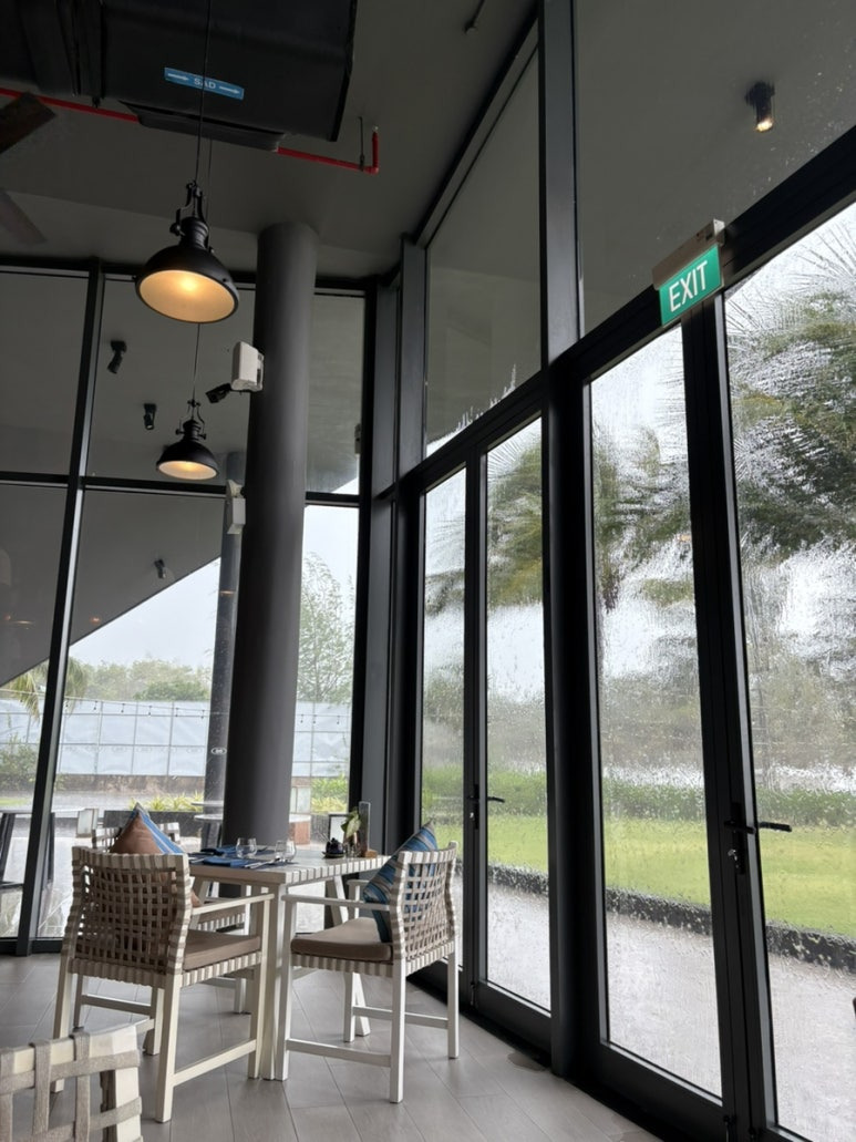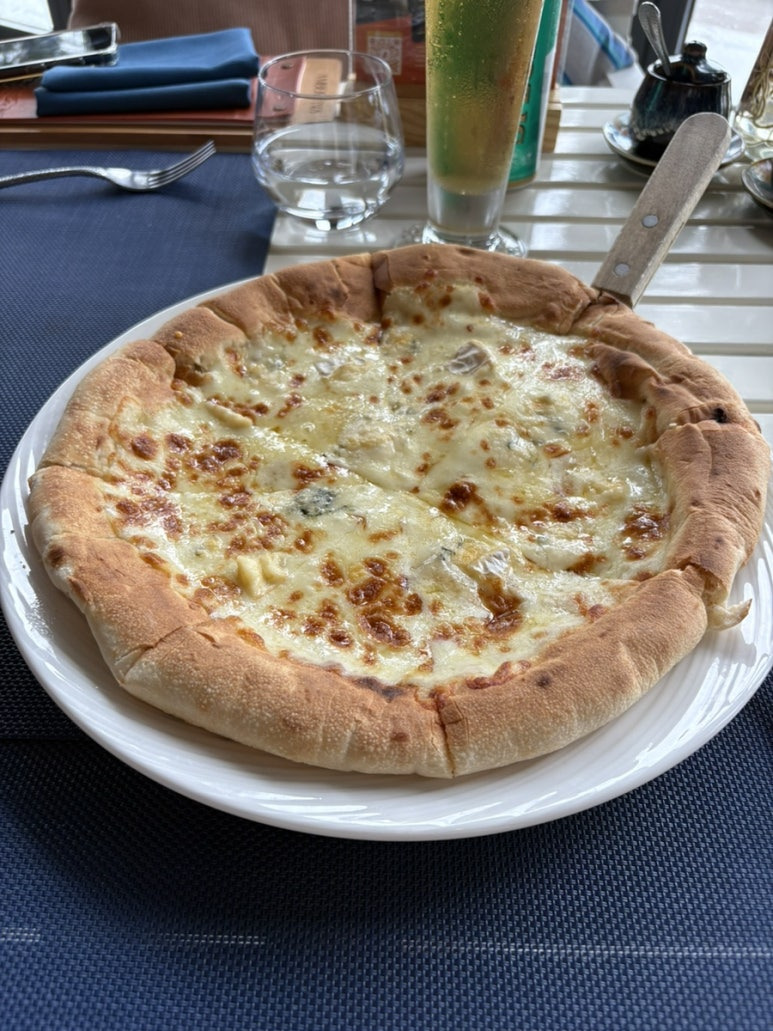 수영장 앞에 있는 리조트 식당에서 피자를 시켜먹었다.