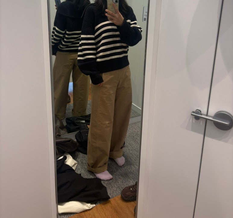 그리고 갑자기? 유니클로 들려서 무슨 인기 많은 바지 입어봤는데 여전히 핏 예쁨...