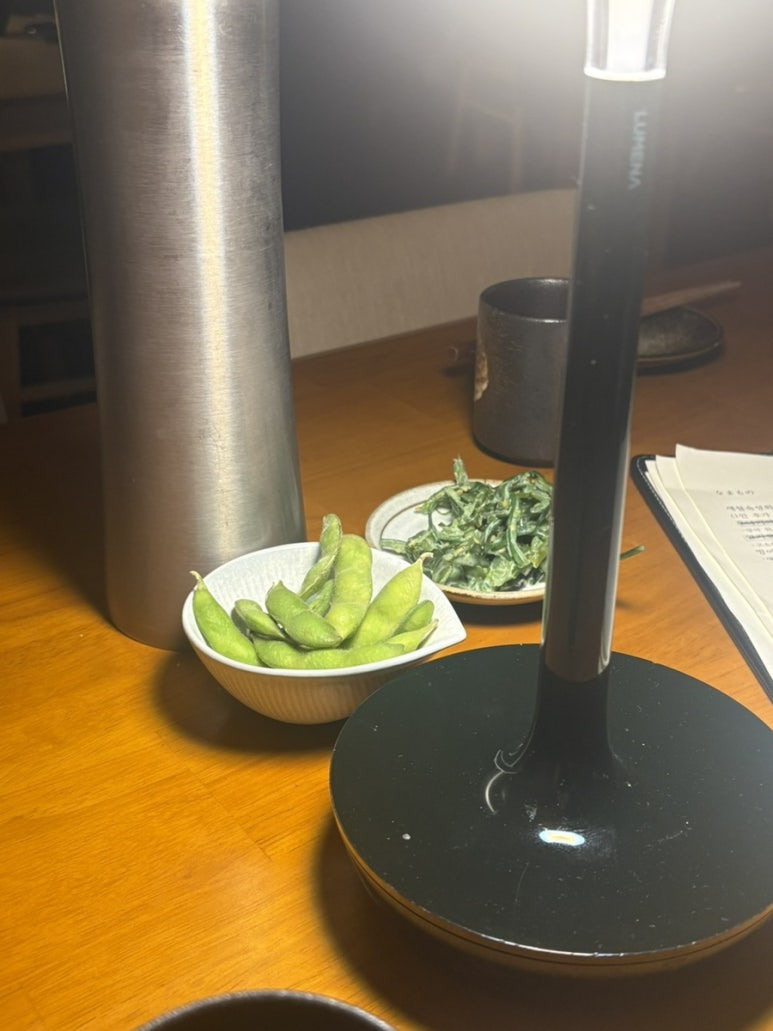 메뉴 나오기 전에 미역줄기?무침 같은거랑 삶은 콩을 주시는데
