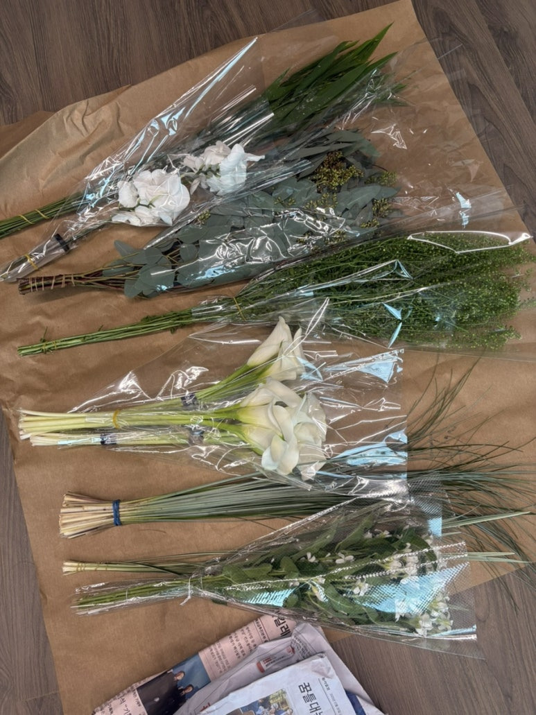 칭구칭긔 부케 만들어주기로 해서 연습용 꽃