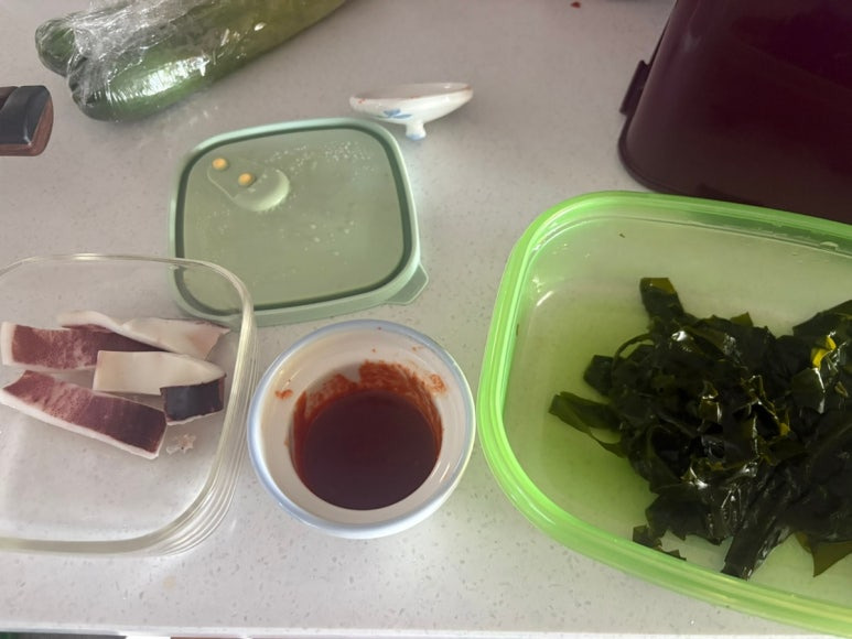 엄마가 갑자기 미역이랑 오징어 삶아놨다고